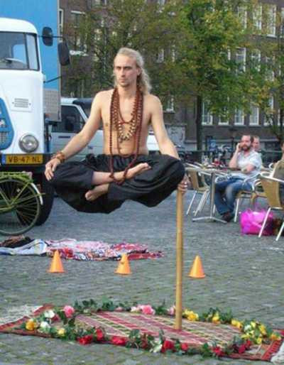 Đồng thời, họ cũng đặt câu hỏi tại sao nhiều Guru luôn phải chạm tay vào 1 chiếc gậy được dựng vuông góc với mặt đất? Nhiều nhà báo và phóng viên đã đi tìm câu trả lời về khả năng bay của những Guru này. Thông qua việc quan sát kỹ lưỡng những màn biểu diễn yoga bay trên đường phố của nhiều người tự xưng là các Guru, những phóng viên phát hiện ra đây chỉ là những trò bịp bợm.