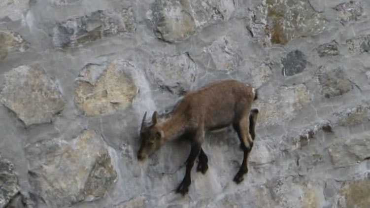 Đó chính là những chú dê với khả năng giữ thăng bằng tuyệt vời. Nhìn từ xa trông chúng như những hòn đá nhô ra khỏi vách đá, nhưng nếu nhìn kĩ hơn, bạn sẽ phát hiện ra đó là ... dê.