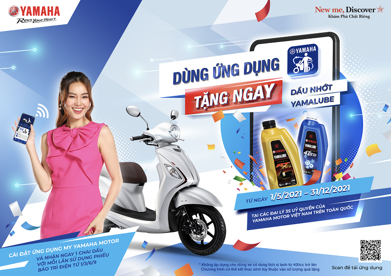 Cụ thể, từ ngày nay đến 31/12/2021, tất cả khách hàng có cài đặt ứng dụng My Yamaha Motor, khi mang xe máy nhãn hiệu Yamaha do Công ty TNHH Yamaha Motor Việt Nam phân phối hoặc sản xuất đến các đại lý Yamaha 3S ủy quyền và cửa hàng Yamaha trực thuộc Công ty TNHH Yamaha Motor Việt Nam để bảo trì theo Phiếu bảo trì định kì số 1, 3, 6, 9 trên ứng dụng Sổ bảo hành điện tử sẽ được tặng ngay 1 chai dầu nhớt Yamalube.