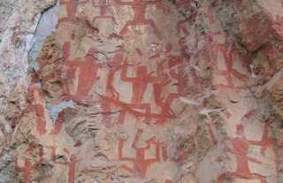 | Bích họa thường được vẽ trên các vách đá cheo leo. (Ảnh TS. Trình Năng Chung cung cấp). |