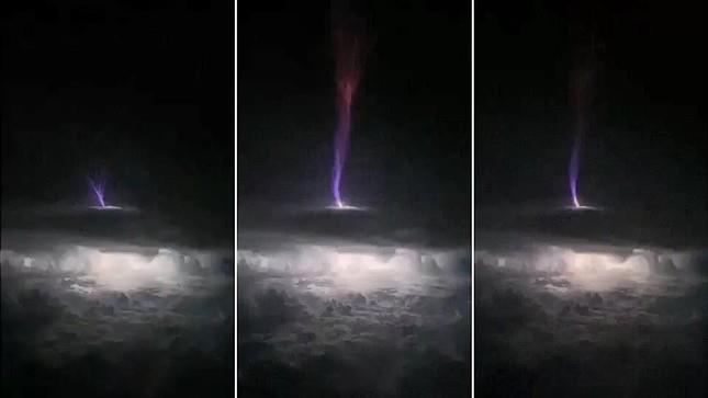 Ba bức ảnh chụp liên tiếp tia sét phản lực khổng lồ.