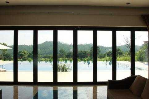 Công trình nhà nằm trong sân golf Tam Đảo của gia đình chị Hương là ví dụ điển hình cho việc tận dụng cửa nhôm kính xếp trượt lớn để mang lại cảnh view đẹp cho ngôi nhà. Ngôi biệt thự được lắp bộ cửa nhôm kính xếp trượt 10 cánh của Eurowindow ra sân vườn, bởi bên cạnh view đẹp nhìn xuống toàn bộ sân golf, chủ nhà còn xây bể bơi lớn ở sân sau nhằm mang đến một không gian vui chơi, thư giãn cho cả gia đình cũng như bạn bè, do đó yêu cầu có một khoảng mở lớn nối thông giữa không gian trong nhà và không gian bên ngoài là yêu cầu quan trọng nhất của chủ nhà.