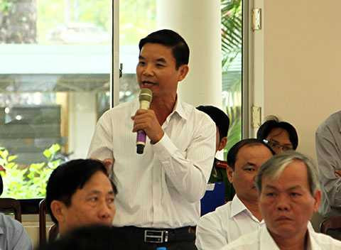 | Ông Nguyễn Văn Tiến, Trưởng Ban giải tỏa đền bù số 1 trả lời ý kiến của Bí thư Thành ủy Đà Nẵng Trần Thọ. |
