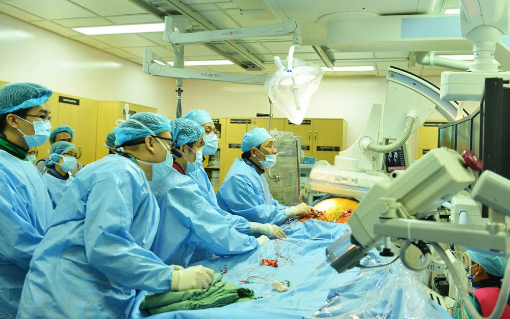 Ê-kíp gây mê hồi sức thực hiện gây tê vùng bẹn 2 bên, rồi kíp can thiệp và phẫu thuật tiến hành thủ thuật TAVI cho bệnh nhân. Sau can thiệp 1 ngày bệnh nhânn cải thiện tình trạng chóng mặt, đau ngực và khó thở. Bệnh nhân sau đó đi lại và ăn uống bình thường và được xuất viện sau 5 ngày.