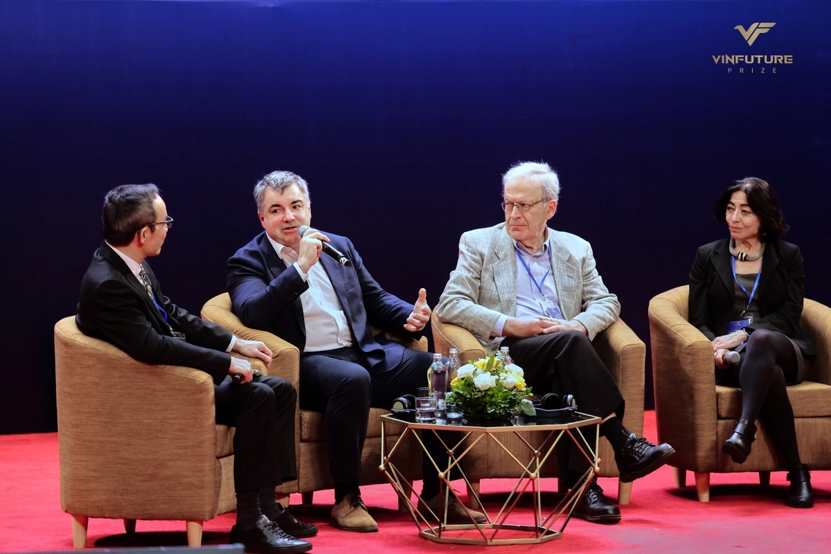 Các thành viên Hội đồng Giải thưởng VinFuture trong buổi giao lưu với nhà khoa học trẻ và sinh viên Việt Nam ngày 18/12/2022.