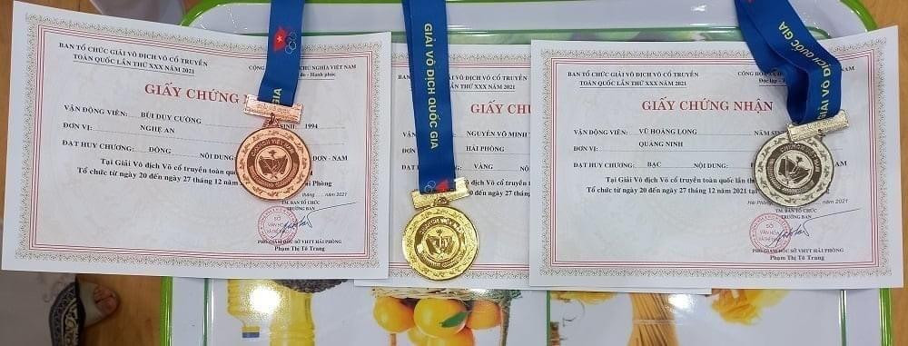 Giấy chứng nhận thành tích cho các vận động viên tham gia thi đấu giải toàn quốc 2021 do Sở Văn hoá và Thể thao thành phố Hải Phòng cấp.