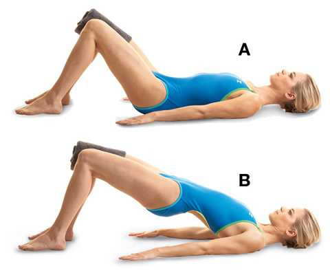 Bạn nằm ngửa trên sàn tập, bàn chân chạm sàn, hai tay dang hai bên, úp lòng bàn tay xuống. Nâng mông lên đến khi thân và đùi tạo thành một đường thẳng. Giữ và siết chặt vùng mông, sau đó trở về vị trí ban đầu. Tập động tác này 20 lần. Nghỉ 1 phút và sau đó tập lại.