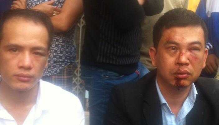 | Luật sư Trần Thu Nam và luật sư Lê Văn Luân sau khi bị hành hung tại xã Đông Phương Yên (huyện Chương Mỹ, Hà Nội) vào chiều 3/11. Ảnh: Facebook luật sư Trần Thu Nam |