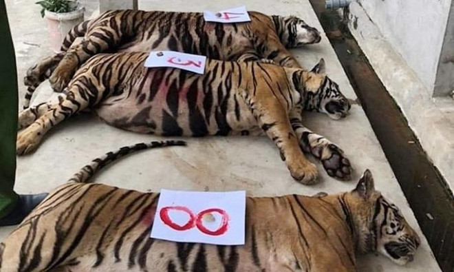 Khoảng 7h ngày 4/8, Công an tỉnh Nghệ An kiểm tra đột xuất nhà ông Nguyễn Văn Hiền (39 tuổi) và nhà bà Nguyễn Thị Định (50 tuổi, cùng ở xã Đô Thành, huyện Yên Thành, tỉnh Nghệ An), phát hiện 17 con hổ đã trưởng thành (200-265 kg/con) được nuôi nhốt trái phép.