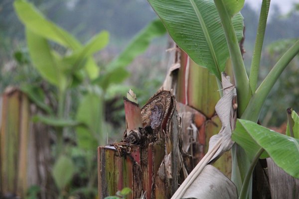 Những buồng chuối đang thời kỳ thu hoạch bị nhóm côn đồ băm nát. (Ảnh: Minh Khang)