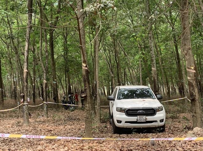 Hiện trường nơi phát hiện chiếc xe bán tải là lô cao su, địa bàn giáp ranh giữa xã Tân Mỹ (huyện Bắc Tân Uyên) và phường Uyên Hưng (TX Tân Uyên). Người này đã lái vào giữa lô cao su, vắng người qua lại, cách hiện trường nơi xảy ra vụ án mạng khoảng 10 km.