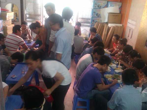Quả đúng như nhận định của bà chủ này, chỉ cần chuẩn bị hơn chục bộ bàn ghế nhựa, một mái hiên di động và vài chục bộ bát đĩa là đã có thể khởi động việc kinh doanh.