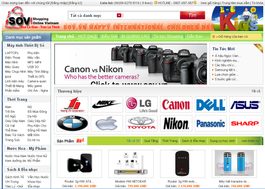 (VTC News) - Chào mừng ngày Quốc tế Thiếu Nhi 1/6 và cùng giải nhiệt cho mùa mua sắm hè sôi động. Website Shopping Online VietNam – sov.vn thực hiện chương trình giảm giá hàng loạt sản phẩm Điện Máy – Điện Tử - Thời trang – Hàng Tiêu Dùng – Thiết bị phụ kiện máy tính …vv Với mức giảm giá lên đến 15% cho các mặt hàng trong mục Giảm Giá Mỗi Ngày của website.