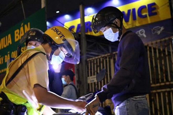 Trạm CSGT Đa Phước thuộc Phòng CSGT Đường bộ, Đường sắt Công an TP.HCM lập chốt đo nồng độ cồn tại giao lộ đường Nguyễn Văn Linh - Phạm Hùng, huyện Bình Chánh.