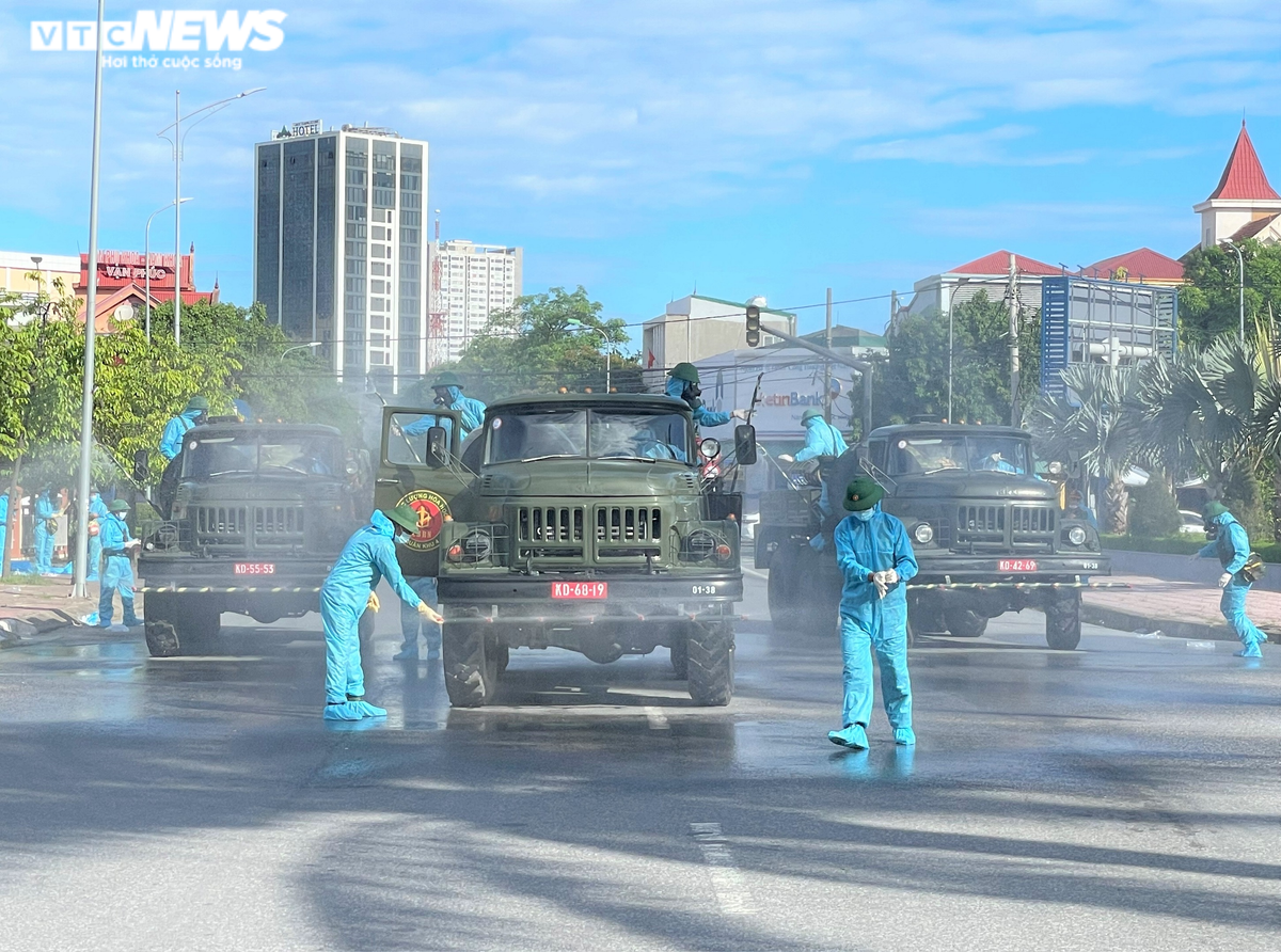 Bộ đội Hóa học Quân khu 4 phun khử trùng trên các tuyến đường ở Thành phố Vinh.