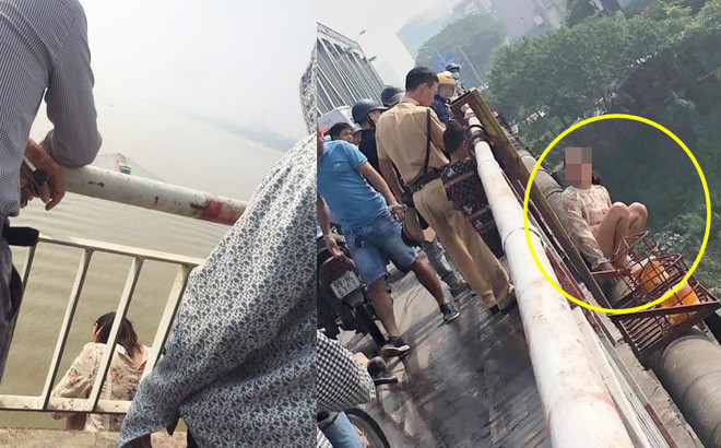 Một người phụ nữ bế con lên cầu Chương Dương (Hà Nội) và có ý định tự tử khiến nhiều người đi đường vào thời điểm đó hú vía.