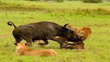 Giằng co yếu thế, 'chúa sơn lâm' tháo chạy trước trâu rừng
