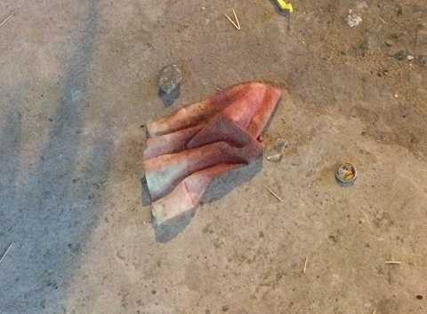 | Khăn vấy máu trong lúc hỗn chiến. Ảnh: Tử Long |