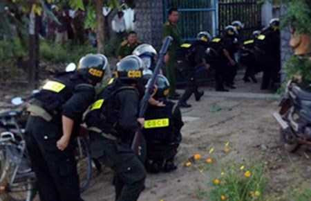 | Cảnh sát cơ động tỉnh Bình Thuận triển khai tấn công căn nhà mà Nguyễn Quang Toàn cố thủ vào chiều 18/9. Ảnh: PN |