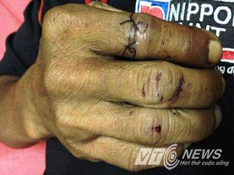 | Tay ông cũng bị nhóm giang hồ chém may đến 4 mũi hiện đang rất đau |