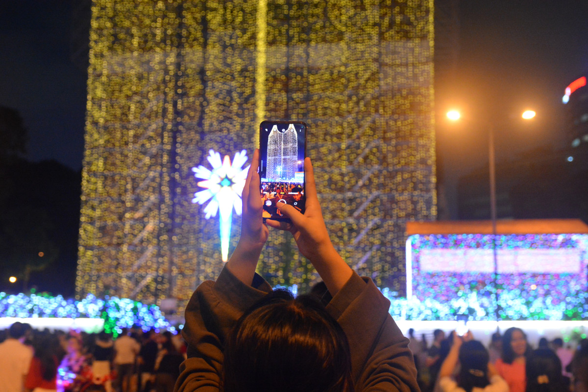 21h ngày 24/12, dòng người từ khắp nơi trên địa bàn TP.HCM vẫn đổ về khu vực trung tâm TP.HCM để đón Giáng sinh.