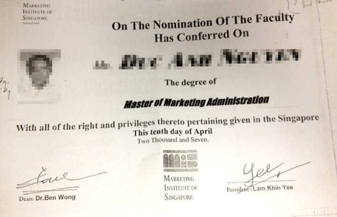 | Bằng thạc sĩ của ông Đ. được MIS xác nhận không phải do đơn vị này cấp - Ảnh: M.Giảng |