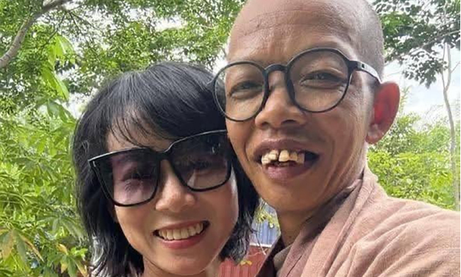 Hình ảnh lan truyền trên mạng được cho là ông Thích Nhuận Đạt có mối quan hệ tình cảm với cô Tym.