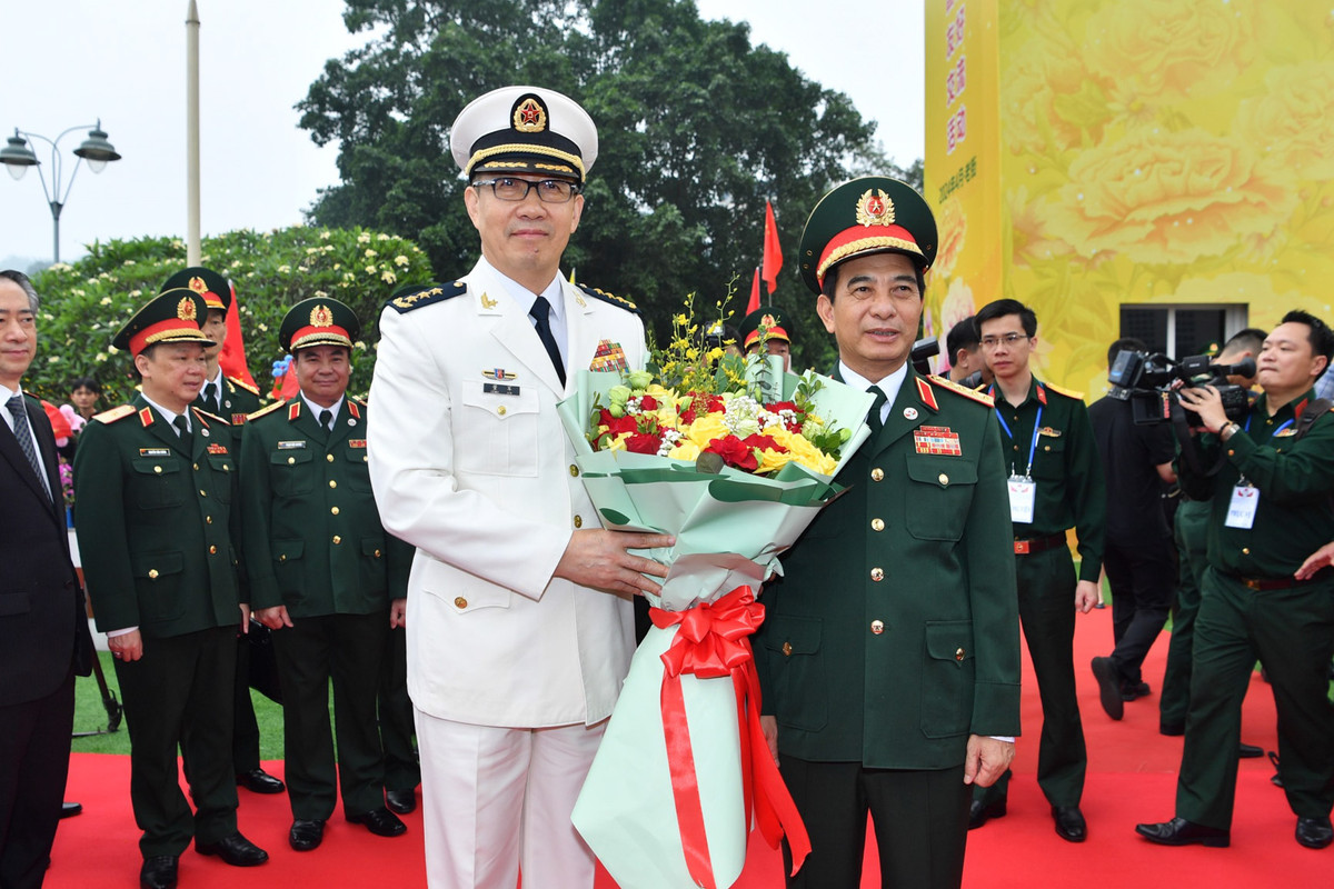 Bộ trưởng Phan Văn Giang và Bộ trưởng Đổng Quân duyệt đội danh dự Quân đội nhân dân Việt Nam.