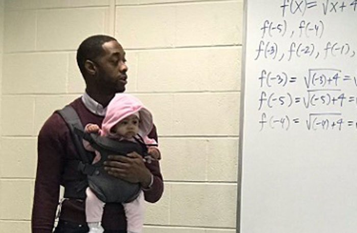 BBC đưa tin, một giáo sư Toán ở Mỹ đang được cộng đồng ca ngợi sau bức ảnh anh vừa bế con hộ sinh viên vừa giảng bài lan truyền mạnh mẽ trên mạng xã hội.