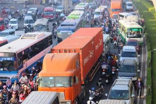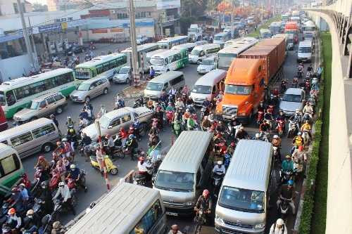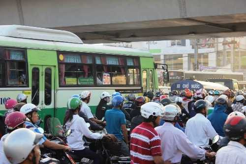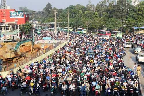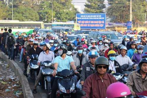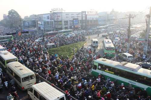 | Hàng ngàn phương tiện chen chúc, di chuyển rất khó khăn |
