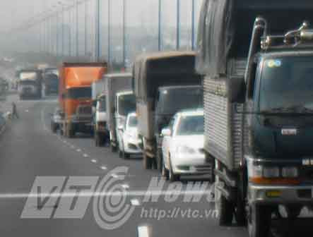 Vụ tai nạn khiến giao thông qua cầu gặp rất nhiều khó khăn, các phương tiện di chuyển chậm qua khu vực gần 1 giờ liền.
