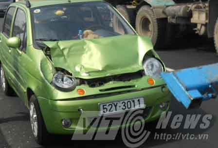 Cùng lúc đó, 1 chiếc xe ô tô 4 chỗ mang BSK: 52Y - 3011 lưu thông cùng chiều phía sau cũng không giữ cự ly an toàn đã lao đến húc mạnh vào đuôi xe 7 chỗ gây nên chuỗi va chạm liên hoàn khiến các phương tiện hư hỏng.