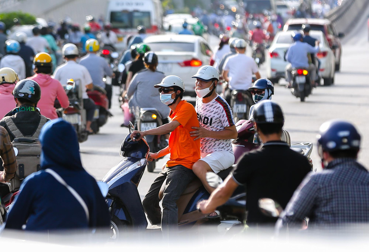 Khoảng 7h30, trên tuyến đường Nguyễn Trãi, lượng người tham gia giao thông lớn, dẫn đến tình trạng ùn tắc. Người điều khiển phương tiện nhích từng bước chân.