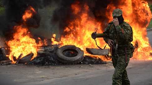 Vyacheslav Ponomarev, thị trưởng do người dân Slavyansk bầu ra, được hãng tin AP dẫn lời nói hai trực thăng quân đội Ukraine bị bắn hạ khiến một phi công tử thương và một phi công khác bị bắt sống.