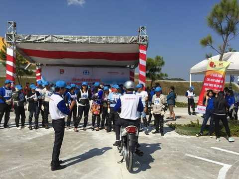 | Đoàn viên thanh niên TP. Đà Lạt (tỉnh Lâm Đồng) được tập huấn kỹ năng lái xe an toàn dưới sự hướng dẫn của chuyên gia từ Honda |