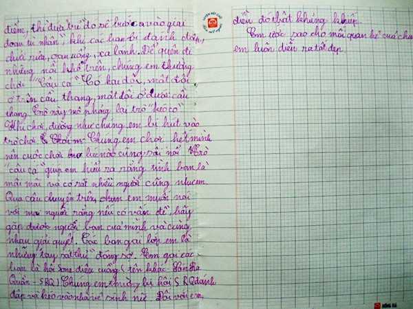 Cũng theo chị Ngọc, trước các bài văn “lạ” của học sinh, phụ huynh nên cảnh giác. Ngoài ra, nên thường xuyên dành thời gian để kiểm tra vở viết cũng như các bài văn của con làm vì đây cũng là một trong những cách để kiểm tra xem tâm lý con mình có phát triển bình thường hay không.