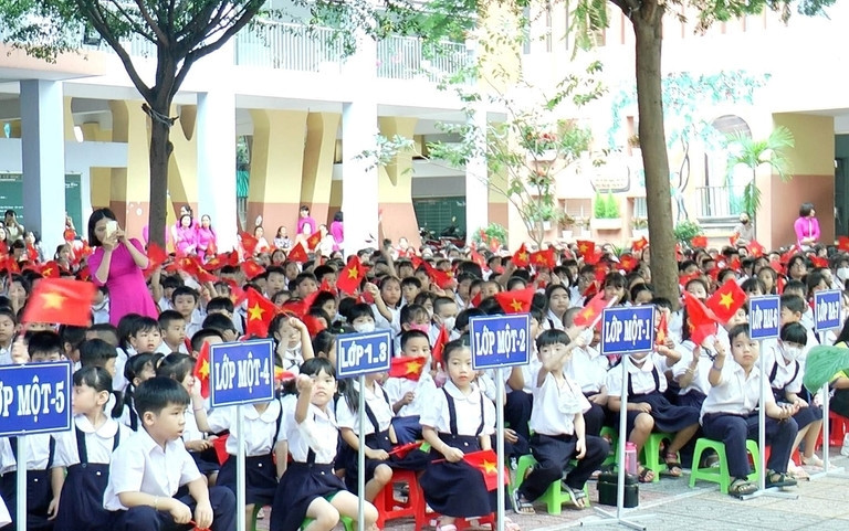 Bà Rịa - Vũng Tàu nghiêm cấm giáo viên cấp tiểu học tổ chức dạy thêm, học thêm. (Trong ảnh: buổi khai giảng năm học mới tại Trường Tiểu học Bùi Thị Xuân, TP Vũng Tàu. Ảnh: Quang Hưng)