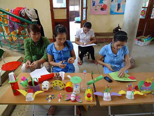 Với chính sách đổi mới giáo dục, việc dạy học, chương trình học đã được giảm tải khá nhiều. Tuy nhiên, ở bậc mầm non, quy định giáo viên chỉ phải dạy 6 tiếng/ ngày đối với nhóm trẻ học 2 buổi và 4 giờ /ngày đối với nhóm trẻ học một buổi gần như không bao giờ được áp dụng trong thực tế, nhất là đối với giáo viên mầm non tư thục quy mô nhỏ. “Ngoài việc chuyên môn, việc dạy trẻ trên lớp, các cô còn phải đảm nhận rất nhiều việc như soạn giáo án, làm đồ dùng, các công việc do hiệu trưởng quy định để đảm bảo 40 giờ làm việc trong tuần theo quy định. Đấy là chưa kể những việc không tên khác…”, cô Thanh Hà - quản lý trường mầm non tư thục Funny House cho biết.