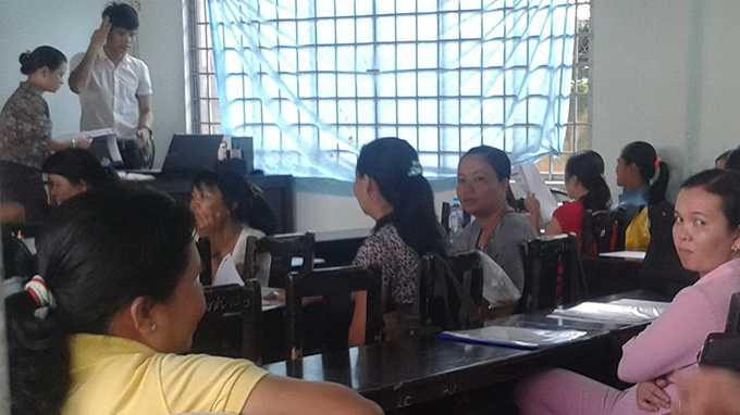 Ngày 14/7, hàng trăm giáo viên đội mưa đến Trung tâm Giáo dục thường xuyên TP Bến Tre luyện thi tiếng Anh cấp tốc.