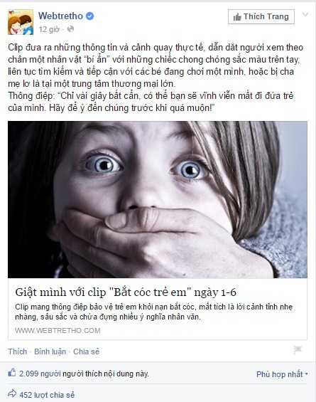 Mới đây, một đoạn clip ngắn hướng tới chủ đề bảo vệ trẻ em đang được cộng đồng mạng Việt Nam, đặc biệt là các ông bố, bà mẹ liên tục chia sẻ, truyền tay nhau.