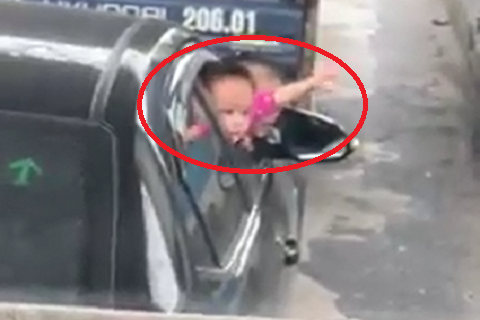 Mới đây, mạng xã hội xuất hiện đoạn clip ghi lại hình ảnh 2 bé gái nhoài nửa người ra khỏi cửa xe ô tô 4 chỗ hiệu Toyota mang biển kiểm soát 30A – 722.64 khi xe này đang chạy bon bon trên đường.