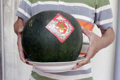 Theo lời kể của T., trước Tết Ất Mùi, anh mua một cặp dưa hấu bán dọc đường Đa Kao (quận 1, TP HCM) với giá 300.000 đồng về chưng.