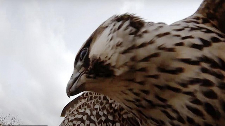 Con chim ưng trong video thuộc loài Saker, loài chim ưng lớn thứ hai trên thế giới sau Gyrfalcon và thường được tìm thấy tại các khu vực bán sa mạc ở Đông Âu và Trung Á.