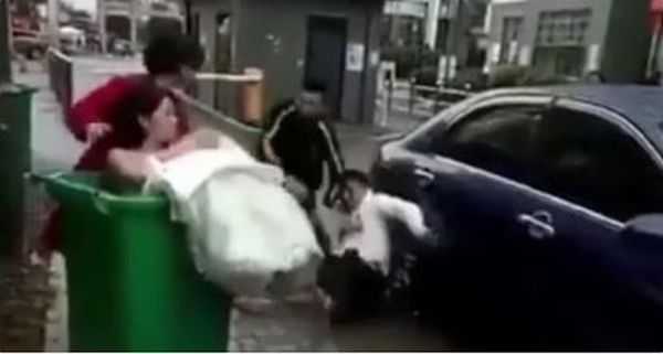 Video: Chú rể ném cô dâu vào thúng rác