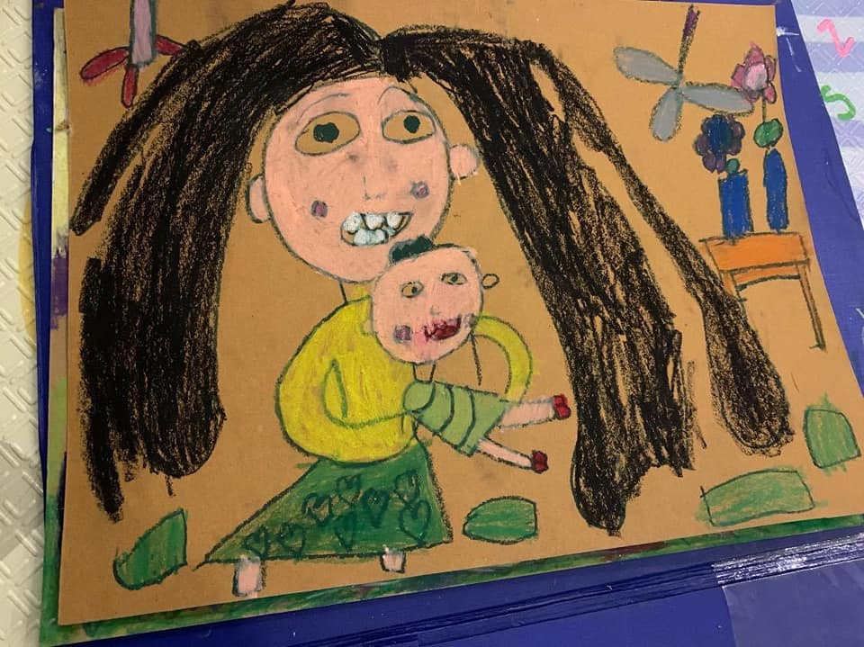 Người mẹ khi nhìn thấy mình trong tranh của con thế này không khéo giật mình "xỉu ngang".