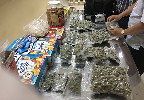 Sau đó, đơn vị phát hiện dấu hiệu khả nghi trong một lô hàng thực phẩm được chuyển từ bang California (Mỹ) cho một người đàn ông tại Hà Nội. Qua kiểm tra, lực lượng chức năng tìm thấy 20 gói nilon chứa cần sa, trọng lượng 4 kg.