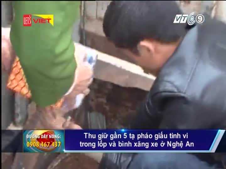 02/01/2017 16:49:00 +07:00Hôm qua, tại Quốc lộ 46, đoạn qua Nam Đàn, Nghệ An, lực lượng chức năng thu giữ gần 500 kg pháo nổ được giấu trong lốp, thùng, bình xăng xe.