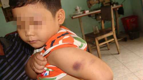 | Bé K. với vết bầm trên cánh tay |