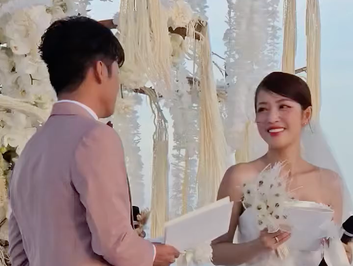 Trong đoạn clip được chia sẻ, chú rể Gin Tuấn Kiệt nói những lời chân thành, tình cảm gửi đến nửa kia: "Anh cảm ơn em vì đã luôn yêu thương, ở bên cạnh anh, trong tất cả mọi chuyện, dù có những thử thách sóng gió, nhưng cuối cùng chúng ta cũng vượt qua được. Để đến hôm nay chúng ta đến với một chương mới của cuộc đời".