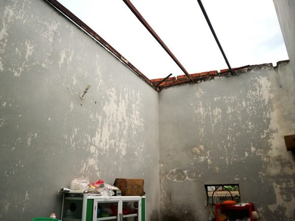 Ngôi nhà bị gió cuốn tốc mái.